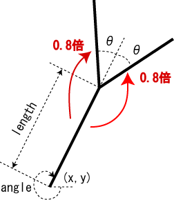 tree(level-1,x1,y1,newlength,angle-theta,theta,mg); // 左の枝