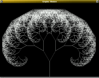フラクタル構造を持つものの例として、地形や樹木の形などが有名です。 そこで、樹木の形を再帰的に定義して、グラフィックメソッドを用いて描いて みることにしましょう。