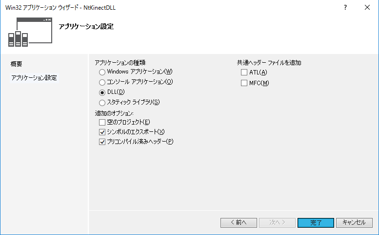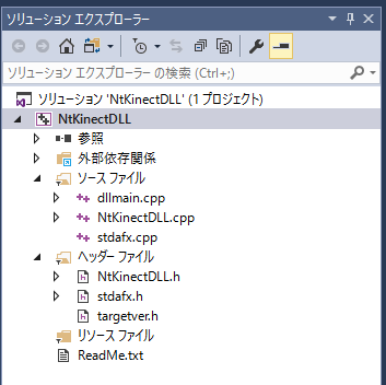 利便性を考えて、NtKinect の機能をフルにDLL化したライブラリを作成しておきます。