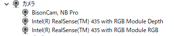 2. D415 または D435 をUSB接続をして、デバイスマネージャで認識されていることを確認する。