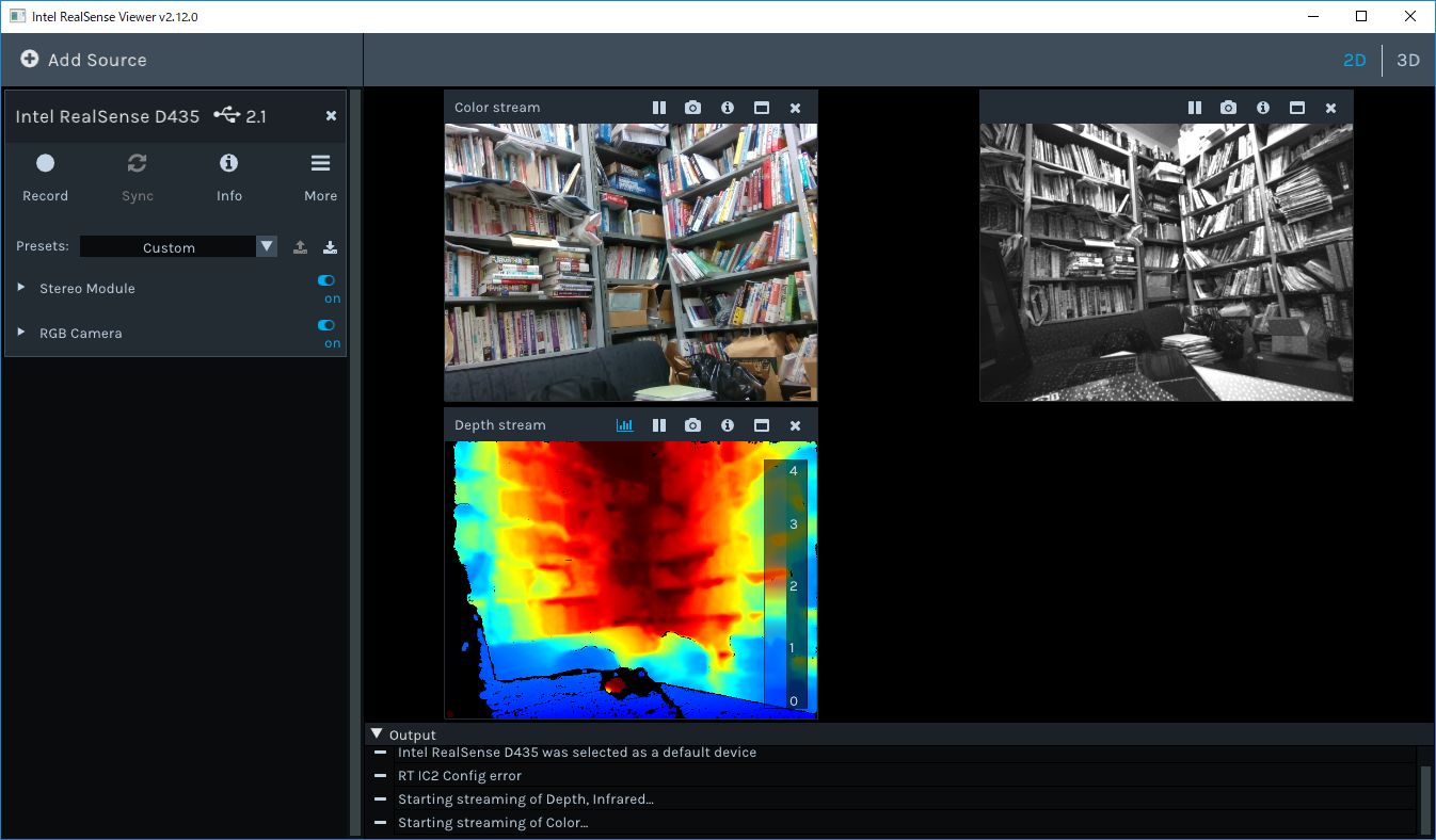 3. サンプルプログラム Intel.RealSense.Viewer.exe で動作を確認する。