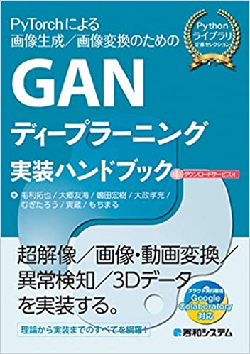 GAN ディープラーニング実装ハンドブック 著者: 毛利拓也, 大郷友海, 嶋田宏樹, その他 出版社 : 秀和システム (2021/2/13) ISBN-10 : 4798062294 ISBN-13 : 978-4798062297