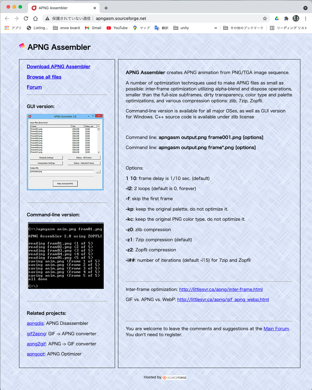 - 公式サイト http://apngasm.sourceforge.net/ にブラウザでアクセスする。