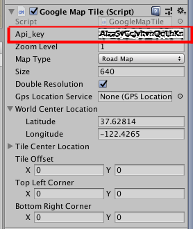 各UnityのProject内には、私の Google Map API_KEY が含まれています。 決してそのままでは動作させず、 自分で取得したAPI_KEY に差し替えて動作させて下さい。 具体的には、「 Unityのhierarchyウィンドウの中の9個の Map_Tiles/Map_Tile_X_Y (X=-1,0,1, Y=-1,0,1) に attach された GoogleMapTile (Script) コンポーネント のAPI_KEY の値を自分のAPI_KEYに変更して下さい 」 ということです。