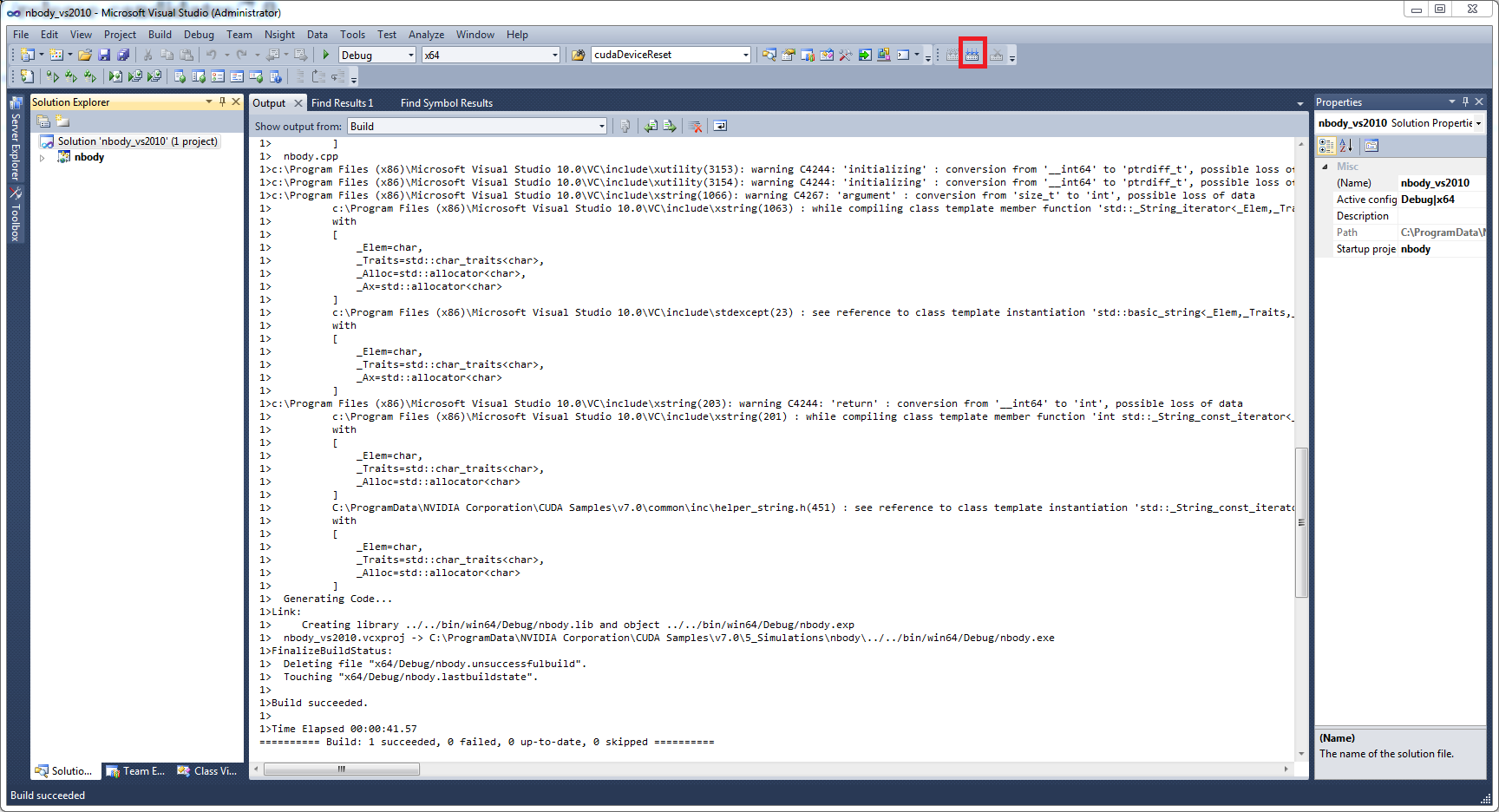 7. Open the nbody Visual Studio solution file for the version of Visual Studio you have installed.