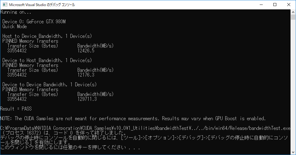 bandwidthTest.exe, deviceQuery.exe, nbody.exe oceanFFT.exe などが動くことを確認する。