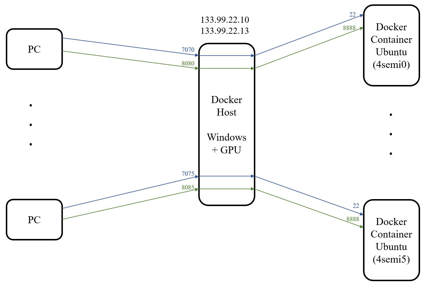 | 割当 | コンテナ名 | ポート1 (22へ転送) | ポート2 (8888へ転送) |