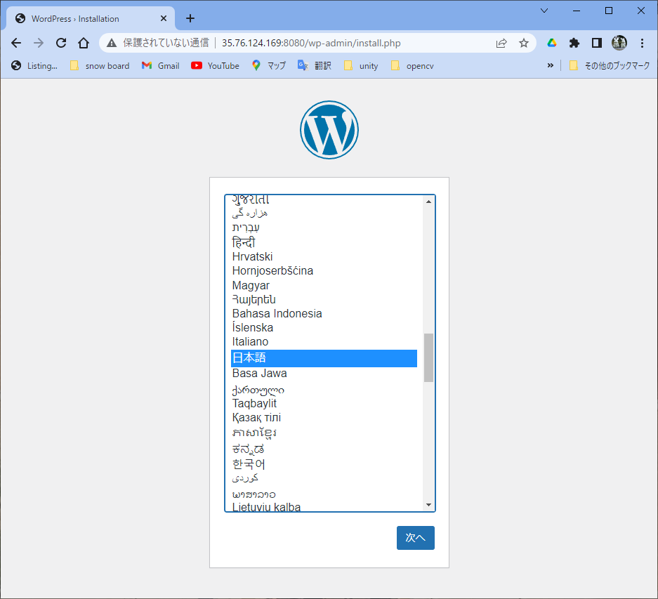 $ cd ~/wordpress $ docker-compose up -d /usr/local/lib/python3.6/dist-packages/paramiko/transport.py:33: CryptographyDeprecationWarning: Python 3.6 is no longer supported by the Python core team. Therefore, support for it is deprecated in cryptography and will be removed in a future release. from cryptography.hazmat.backends import default_backend Creating network "wordpress_wordpressnet" with the default driver Creating volume "wordpress_wordpress_db_volume" with default driver Creating wordpress_wordpress_db_1 ... done Creating wordpress_wordpress_app_1 ... done