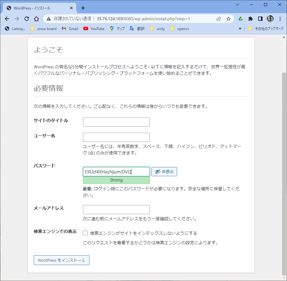 ubuntu@ip-172-30-2-68:~$ docker run --name wordpress_db -dit -v wordpress_db_volume:/var/lib/mysql -e MYSQL_ROOT_PASSWORD=myrootpassword -e MYSQL_DATABASE=wordpressdb -e MYSQL_USER=wordpressuser -e MYSQL_PASSWORD=wordpresspass --net wordpressnet mysql:5.7 be559cba742615cb79e0d06a9c0a33158d53c8b6b35f18c0c202f167e68bd211 ubuntu@ip-172-30-2-68:~$ docker ps CONTAINER ID IMAGE COMMAND CREATED STATUS PORTS NAMES be559cba7426 mysql:5.7 "docker-entrypoint.s…" 4 seconds ago Up 3 seconds 3306/tcp, 33060/tcp wordpress_db ubuntu@ip-172-30-2-68:~$ docker run --name wordpress_app -dit -p 8080:80 -e WORDPRESS_DB_HOST=wordpress_db -e WORDPRESS_DB_NAME=word pressdb -e WORDPRESS_DB_USER=wordpressuser -e WORDPRESS_DB_PASSWORD=wordpresspass --net wordpressnet wordpress ebf1185f0ae11d9075e63598cce5397c400c41a9b6fdcb49b35cec6af1be73d5 ubuntu@ip-172-30-2-68:~$ docker ps CONTAINER ID IMAGE COMMAND CREATED STATUS PORTS NAMES ebf1185f0ae1 wordpress "docker-entrypoint.s…" 13 seconds ago Up 11 seconds 0.0.0.0:8080->80/tcp, :::8080->80/tcp wordpress_app be559cba7426 mysql:5.7 "docker-entrypoint.s…" 6 minutes ago Up 6 minutes 3306/tcp, 33060/tcp wordpress_db