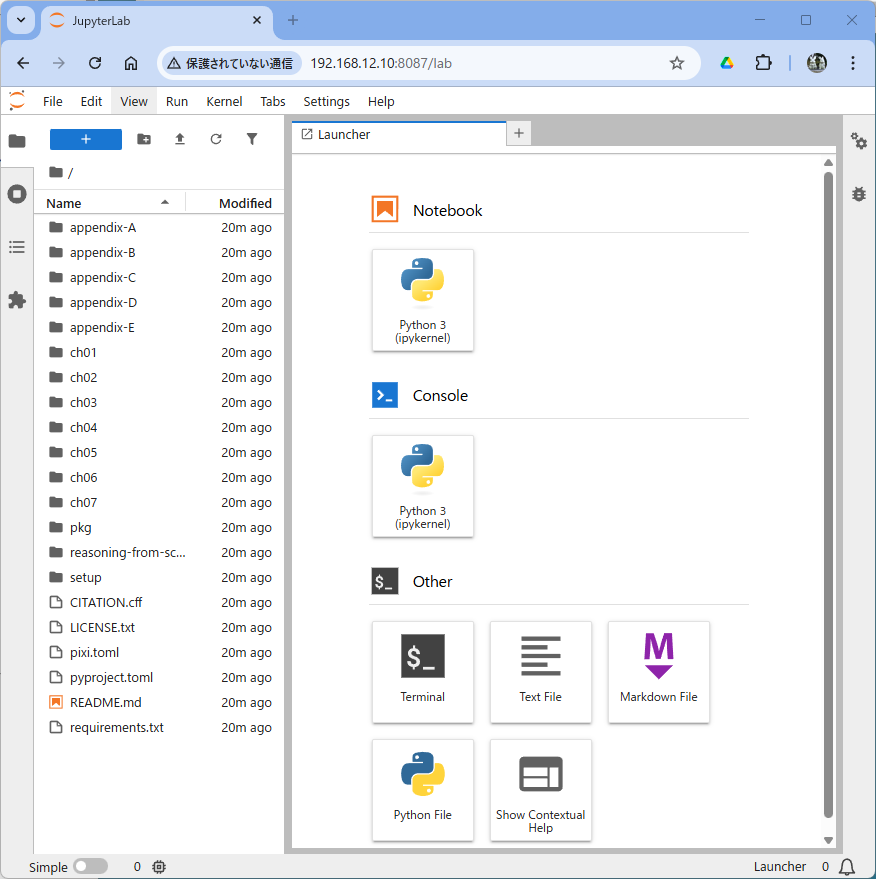 「つくって学ぶ!LLM自作」入門のソースコードを使って jupyter サーバを動作させる。