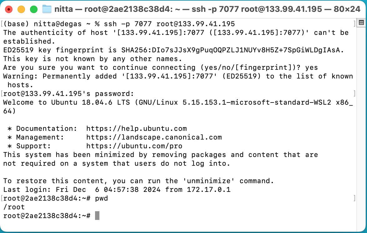 ssh -p 7077 root@133.99.41.195