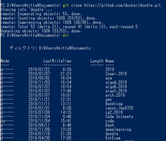 - clone: PowerShellを起動して、適当なフォルダに移動してgit cloneする。