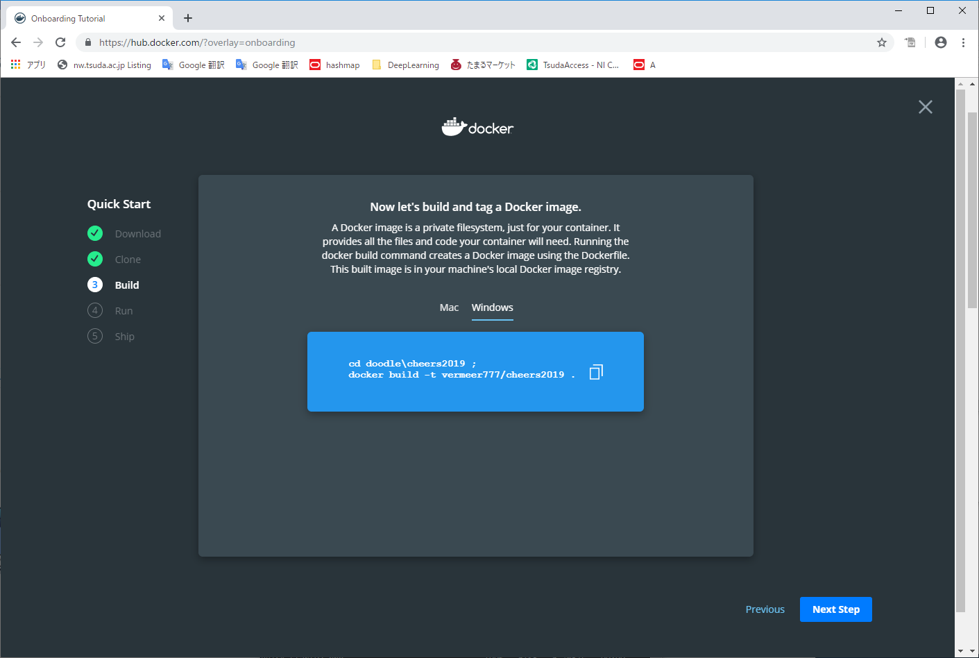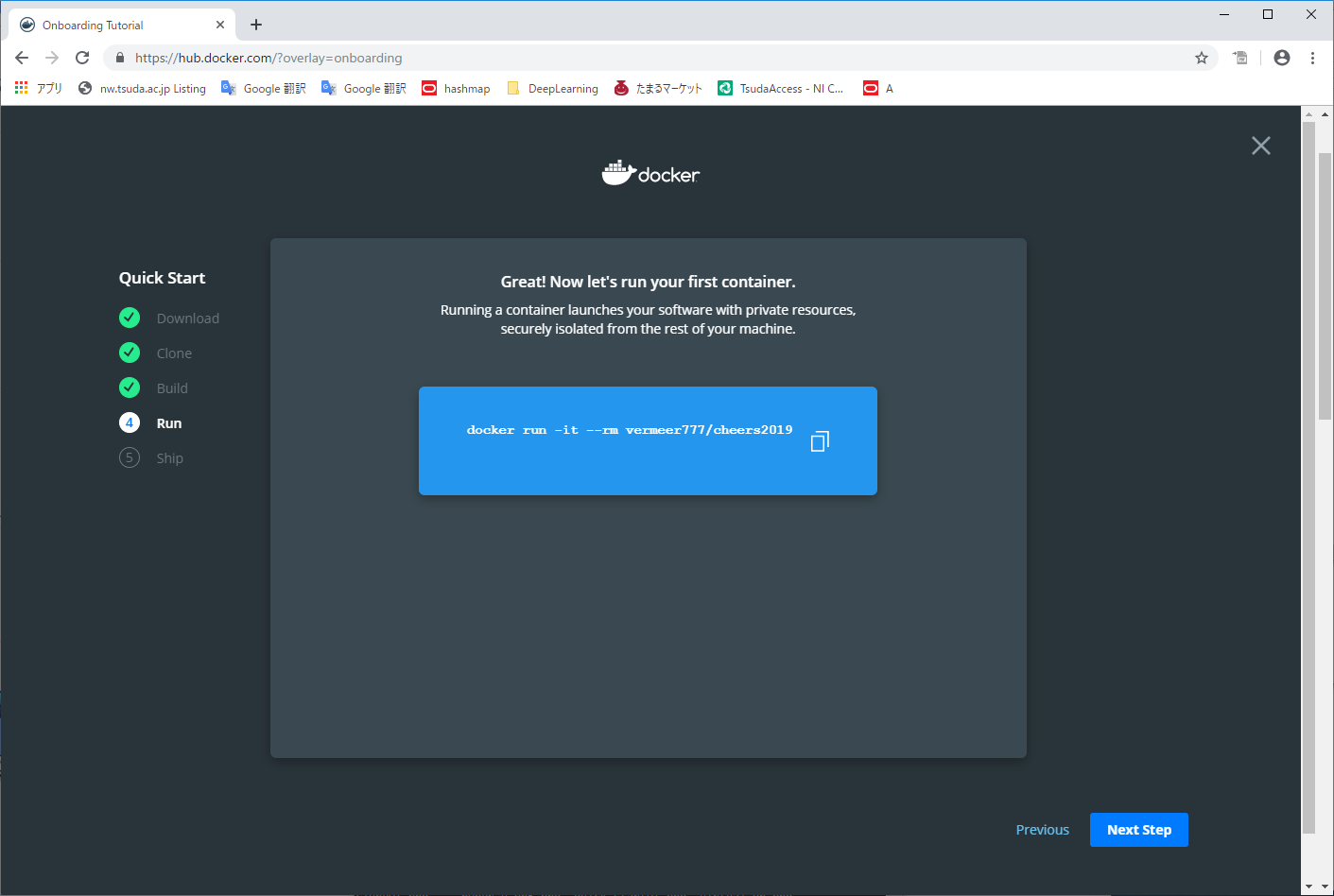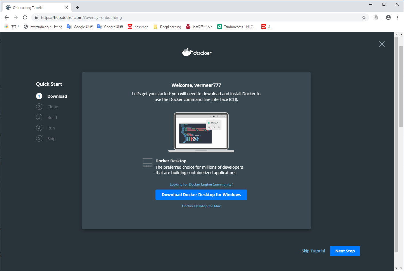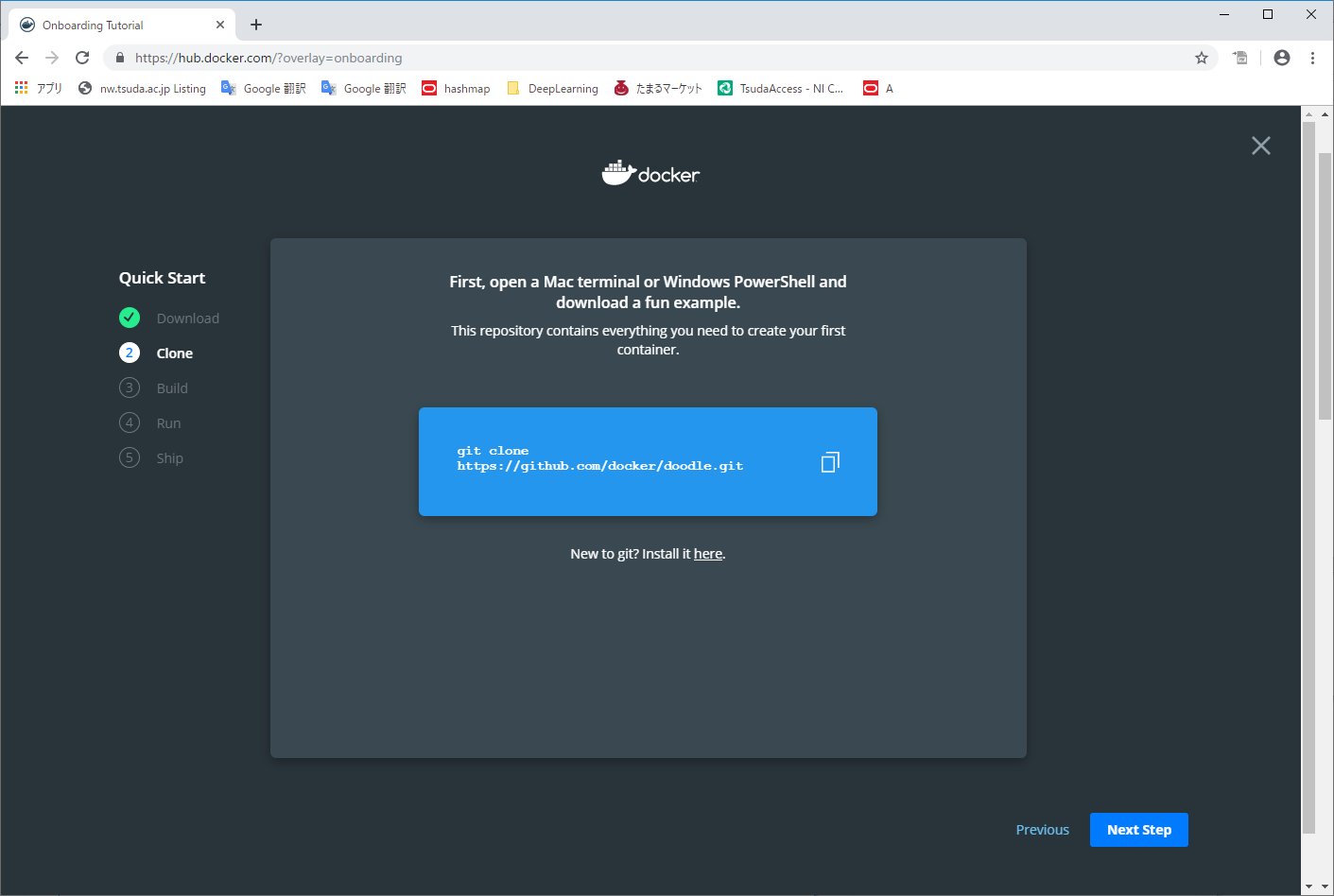- Get Started をクリックすると、ダウンロードして実行する手順が Quick Start として示される。