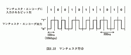 マンチェスタ符合化 --- 1ビット・セルを2分割し、前半をオリジナルの 補数、後半をオリジナルにする方式。