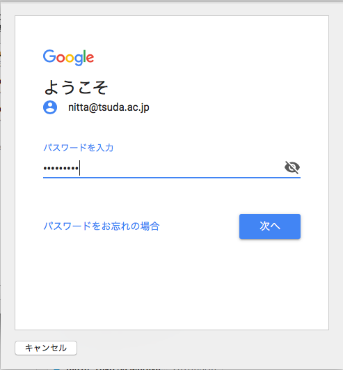 ここでついパスワードを入力してしまうと、それでアウトです。パスワードは敵に漏れました。 後は「パスワードが違います」と表示されて、続いて適当な google のページが表示されれば、 まずあなたは偽のサイトに引かかったことに気づきません。 2段階認証を使っていなければ、 これ以後は、あなた宛のメールや Google Driveの情報など、 いろいろな情報が敵につつ抜けになります。