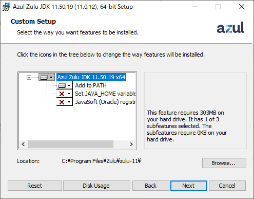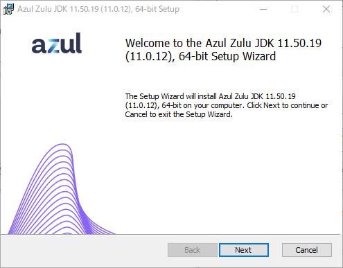 3. ダウンロードした zulu11.50.19-ca-jdk11.0.12-win_x64.msi (インストーラー)を実行するとインストールできる。