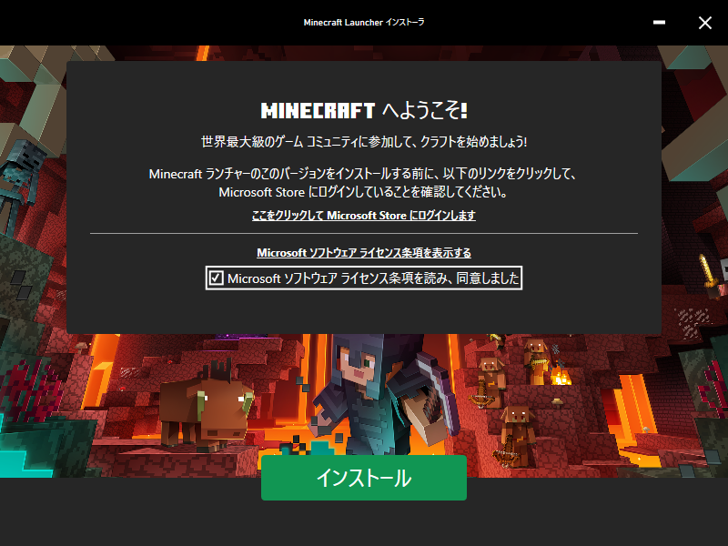 - ダウンロードした MinecraftInstaller.exe を実行する。