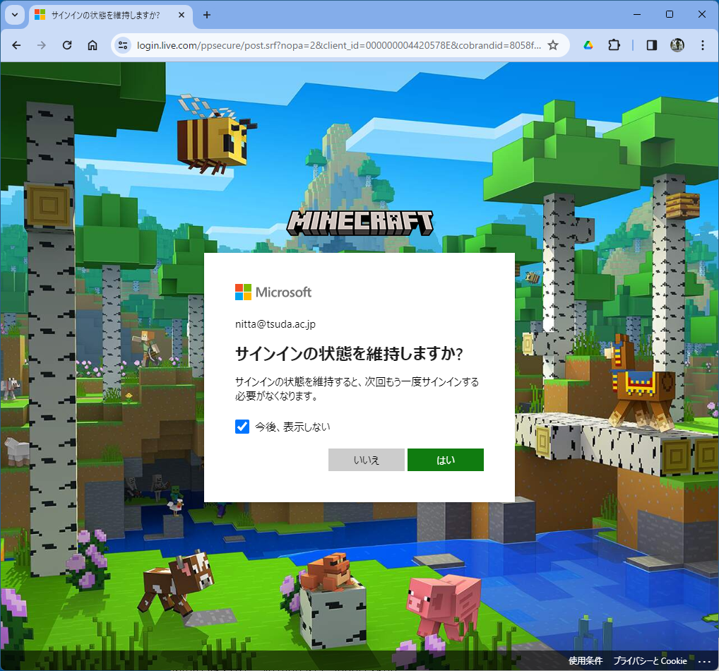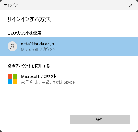 - 「MICROSFOTアカウントでログイン」を選択する。
