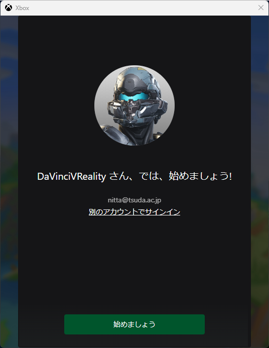 - 「始めましょう」を選択する。
