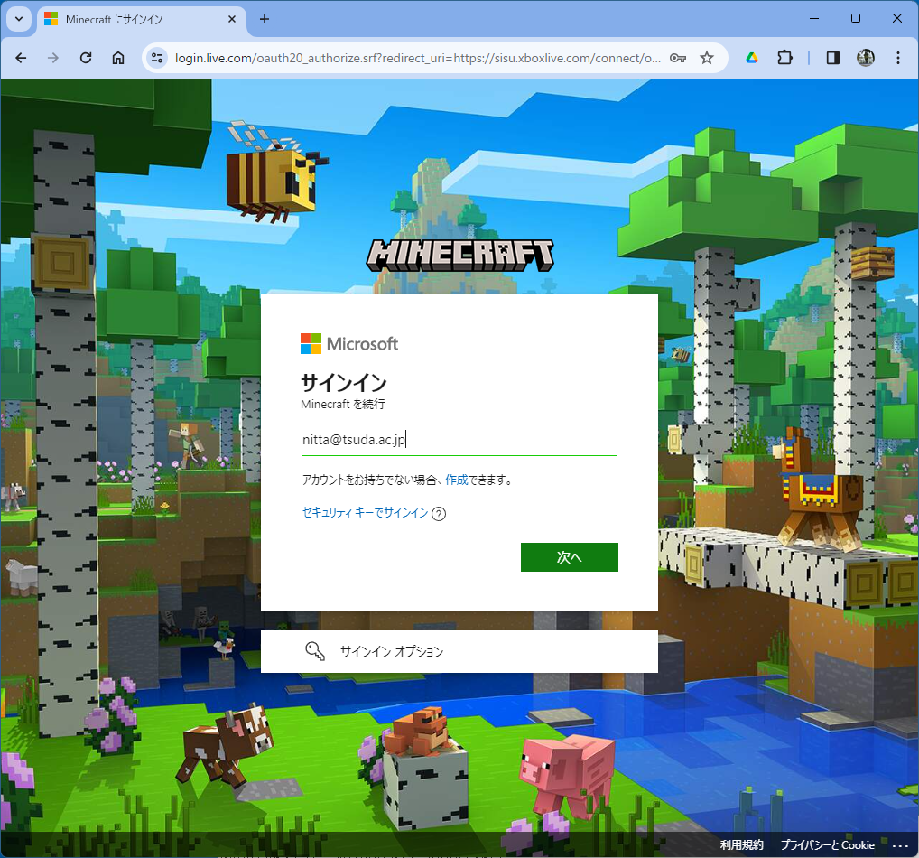 「組織のアカウント」ではサインインできなかったので、「個人のアカウント」のパスワードでサインインした。