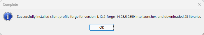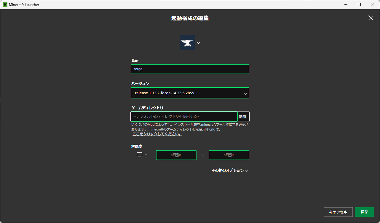 - 参照先が ".minecraft-forge1.12.2" になっていることを確認して、「保存」をクリックする。