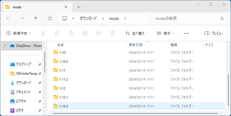 - mods.zip をダウンロードして展開する。この中の "1.12.2" を選択する。