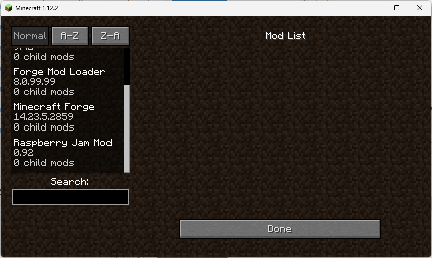 - 左側に表示される Mod List の中に "Raspberry Jam Mod" があれば、正しく MOD が導入されている。