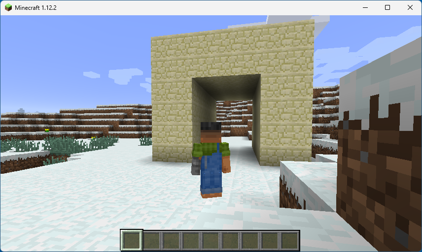 import mcpi.minecraft as minecraft mc = minecraft.Minecraft.create() x, y, z = mc.player.getPos() mc.setBlocks(x-3, y, z+3, x-2, y+3, z-3, 24) mc.setBlocks(x+2, y, z+3, x+3, y+3, z-3, 24) mc.setBlocks(x-3, y+4, z+3, x+3, y+5, z-3, 24) |