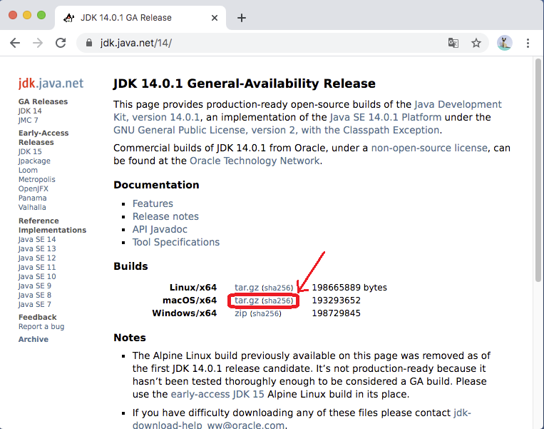 - https://jdk.java.net/ からMacOS用のバイナリをダウンロードする。