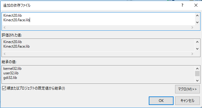 2. Kinect20.Face.lib ライブラリもリンクするように、プロジェクトを変更して下さい。