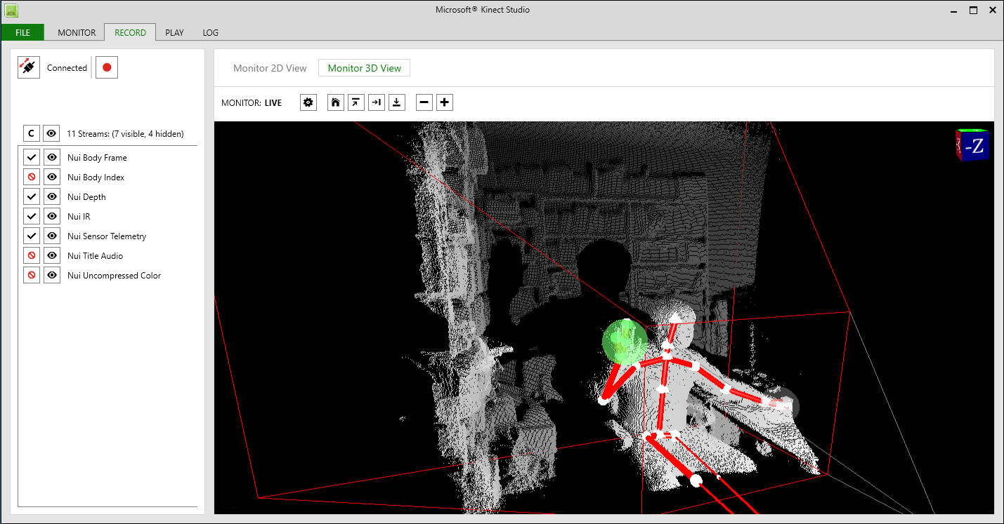 まず Kinect Studio を用いて「所定のジェスチャを行っている場合と行っていない場合の両方を含む」動画を撮影します。