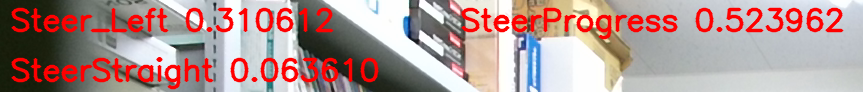 RGB画像の上方に、認識されたジェスチャが表示されます。 discrete ジェスチャは信頼度と共に左上に、continuous ジェスチャは進捗度と共にその右に表示されます。