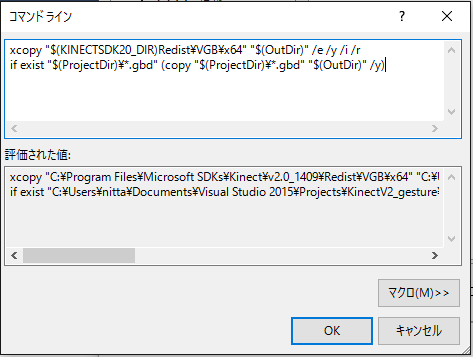 xcopy "$(KINECTSDK20_DIR)Redist\VGB\x64" "$(OutDir)" /e /y /i /r if exist "$(ProjectDir)\*.gbd" ( copy "$(ProjectDir)\*.gbd" "$(OutDir)" /y ) |