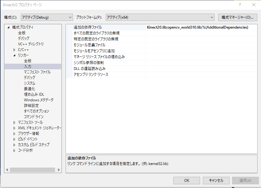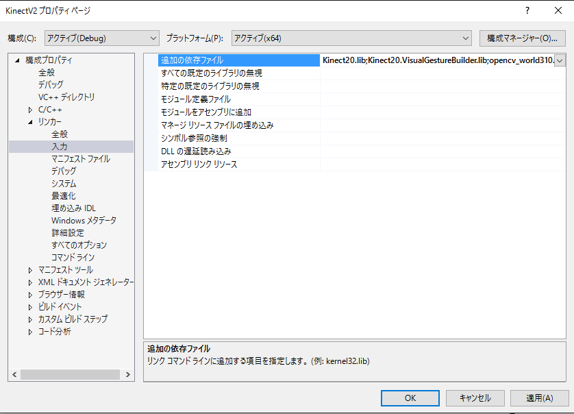 ソリューションエクスプローラ内のプロジェクト名(この例では KinectV2 )をクリックで選択してから、右ドラッグででプロパティを選択します。
