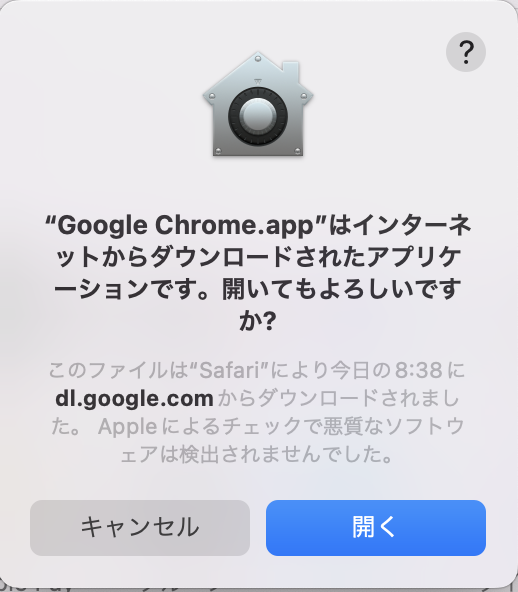 - 最初に起動したときは、「インターネットからダウンロードされたアプリケーションです。開いてもよろしいですか?」