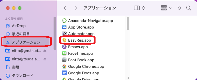 (Optional) Launchpad に EasyRes が表示されない場合がある。そのときは、Finder の Application にある EasyRes.app を選択する。