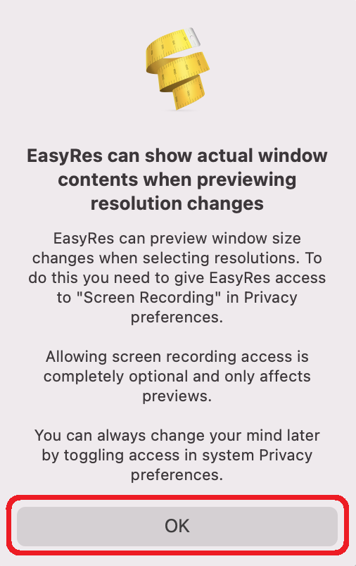 - EasyRes.app に「画面の内容の記録を許可」のチェックをつける。