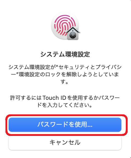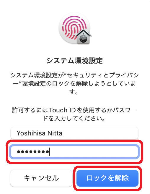 - "セキュリティとプライバシー"環境設定のロックを解除する。