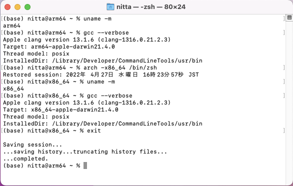 (base) arm64@manet % arch -x86_64 /bin/zsh>
