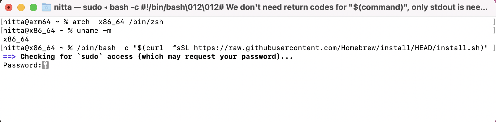 (x84_64)% /bin/bash -c "$(curl -fsSL https://raw.githubusercontent.com/Homebrew/install/HEAD/install.sh)"