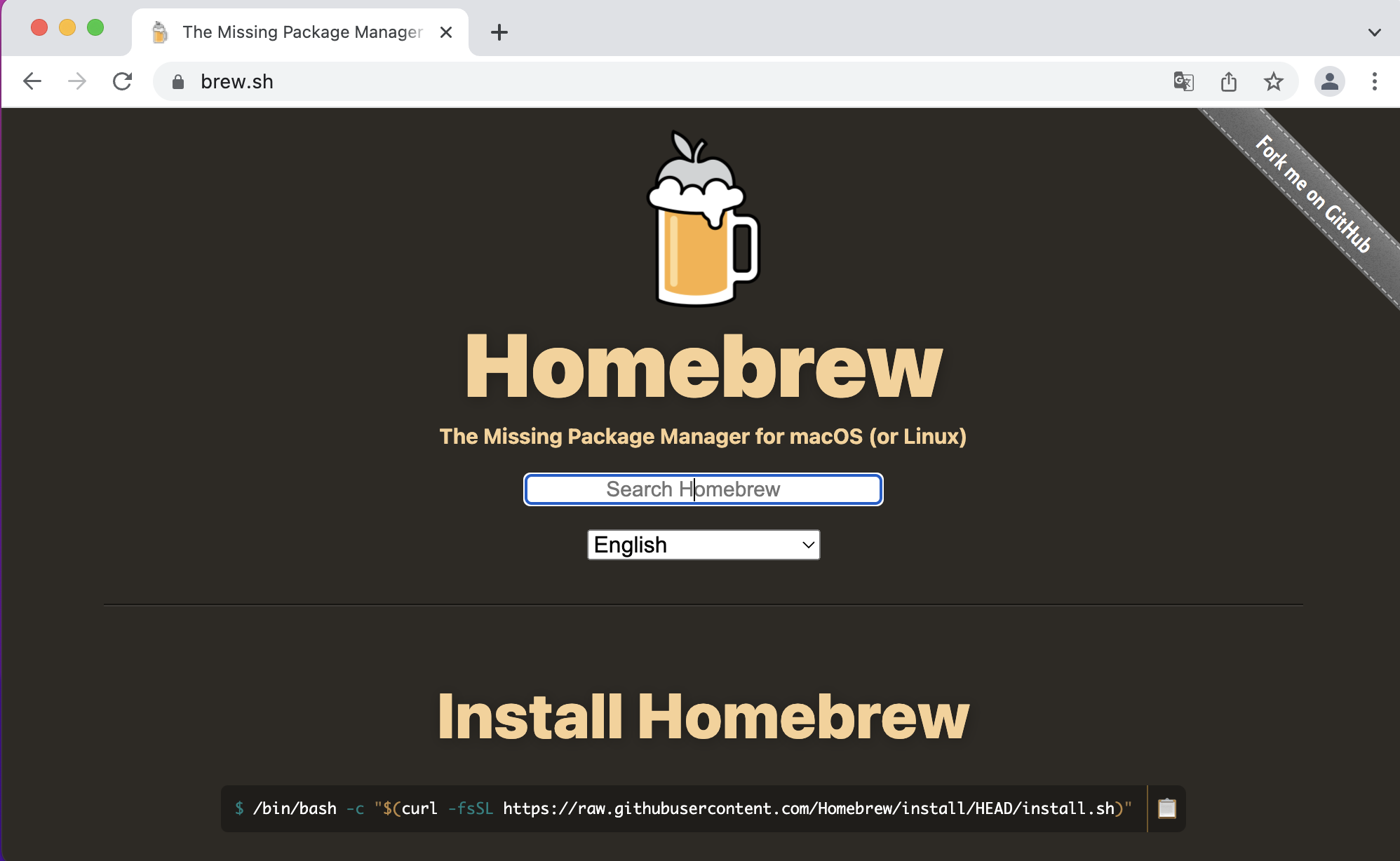 - Homebrew の公式ページは https://brew.sh/ である。その最初にinstall方法が記述されている。