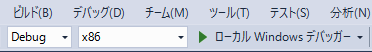 Visual Studio のウィドウ上部のメニューバーの中央付近に、コンパイルオプションを指定するウィンドウがありますので "x64" に変更します。