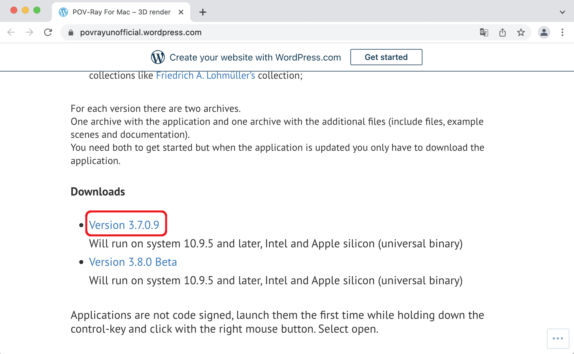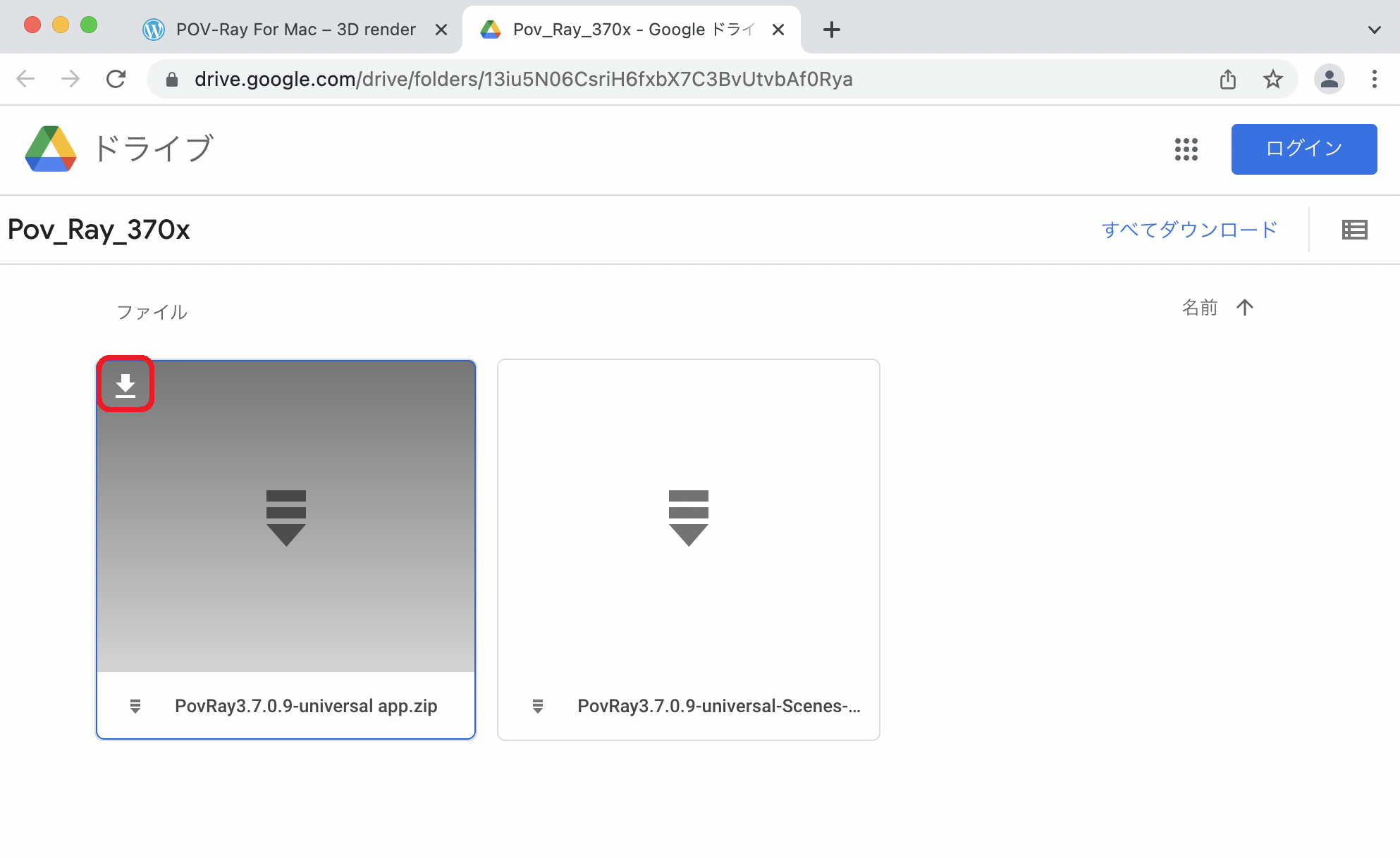 必要なファイルは "PovRay3.7.0.9-universal app.zip" である。