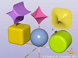 Demo scene files Index POV-Ray Templates Ready-made Basic Scenes Basic Shapes round Basic Shapes angular > Shapes 2 Shapes 3 Blob and Fractal 3D text shapes height_field, HF_macros Mesh and non-CSG shapes Isosurfaces basic functions Isosurfaces function.inc Isosurfaces by patterns Polynomial and Quartic Parametric Surfaces Meshes by meshmaker.inc While Loops, For Loops Random Shearing and transform Colors in textures Textures and Materials Lights, skies, fogs, rainbow Radiosity and Photons Own include files Math functions General statements Animation ___________________ |