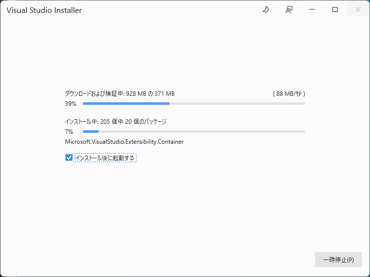 - 表示される指示にしたがって Visual Studio Community をインストールする。