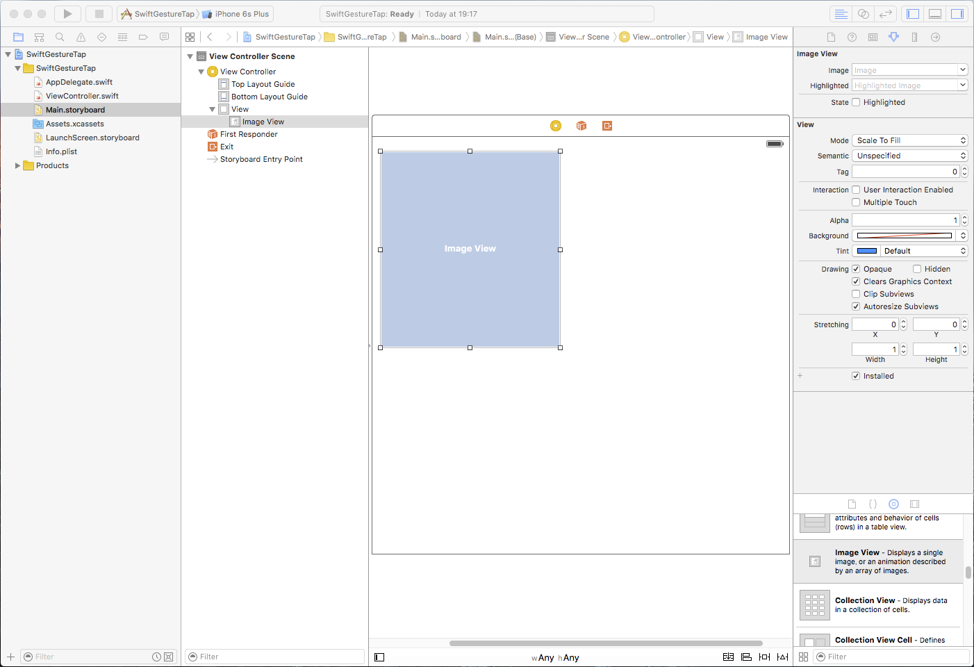 ImageViewはデフォルトではジェスチャを認識しないように設定されていますので、 ジェスチャを認識するように変更します。