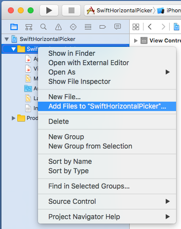 でプロジェクト名のフォルダを右クリックして"Add Files to プロジェクト名"を選択する。
