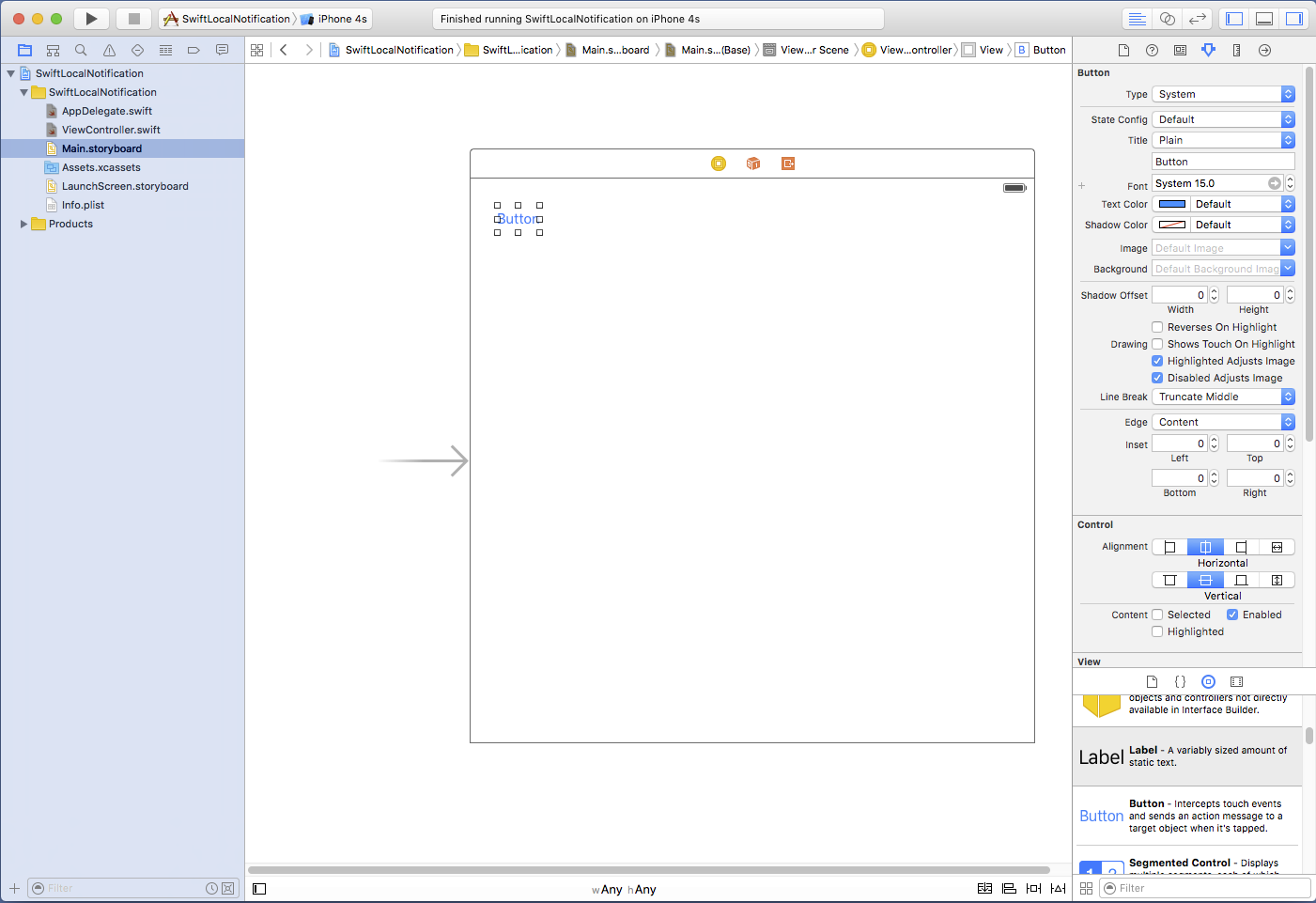 上記の例では、現在時刻から数秒後に通知を設定していました。 特定の日時にローカル通知が来るように設定してみます。