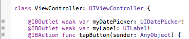 @IBOutlet weak var myDatePicker: UIDatePicker!