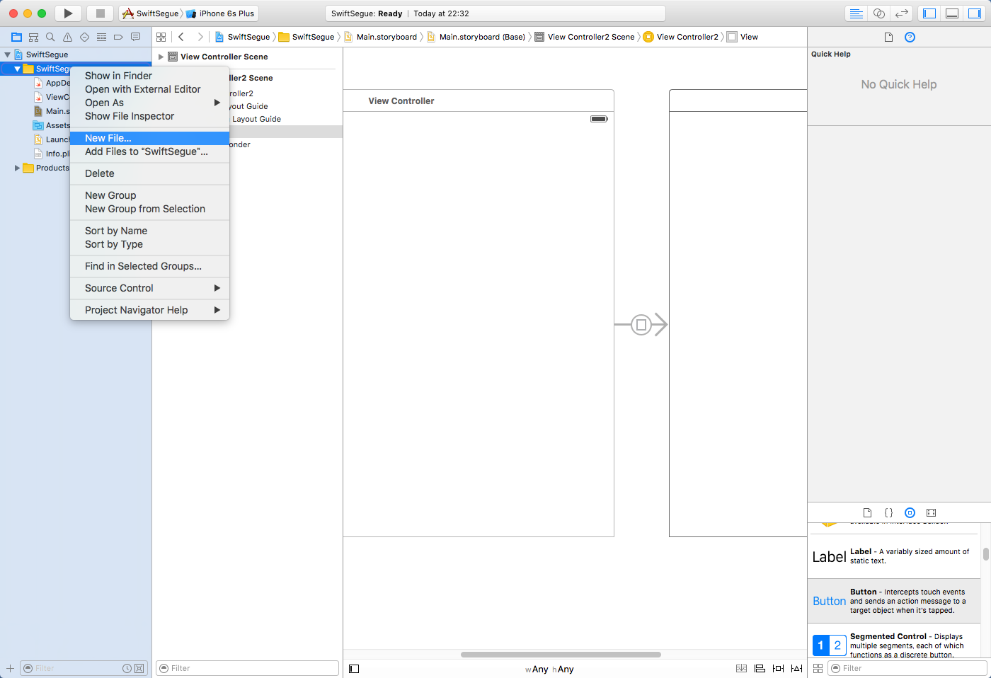 元のView Controller から新しい View Controller に向けて Segue を表す矢印が表示されて、 画面が遷移できることを表します。